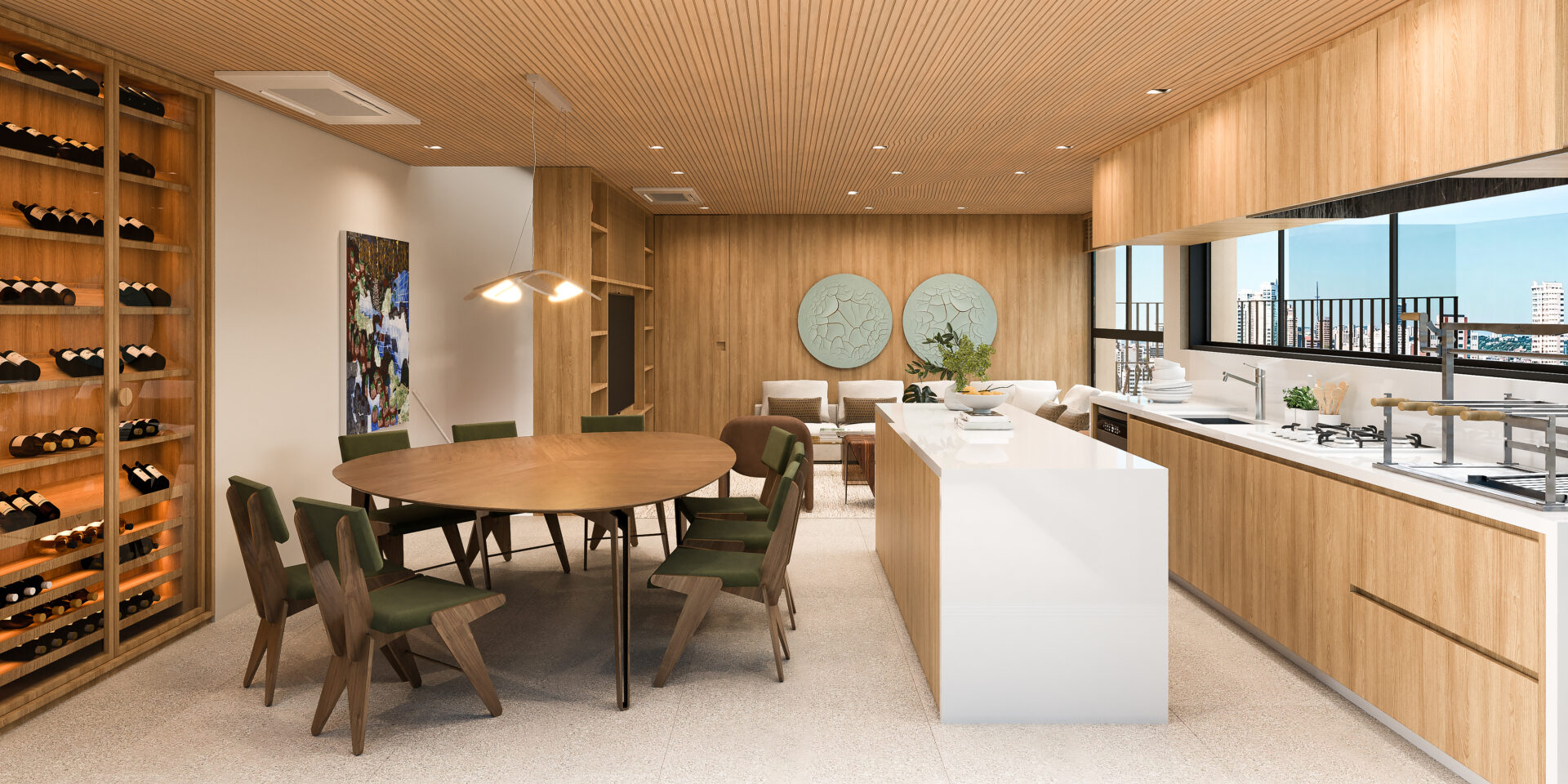 A mágica está na fluidez dos ambientes. Dentro e fora se conectam com harmonia, permitindo que a luz natural percorra os espaços, preenchendo cada canto com serenidade e vida.