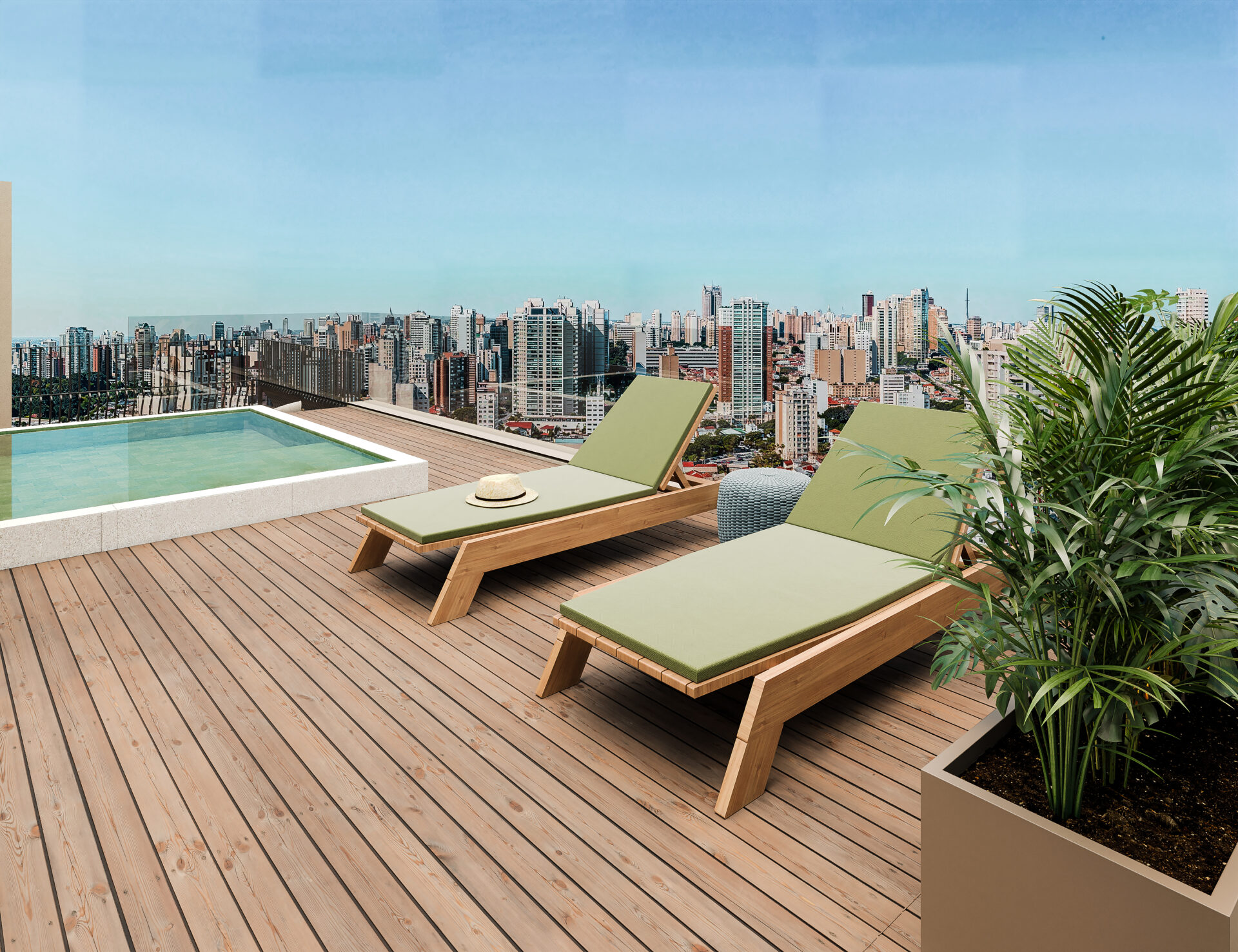 No alto, o piso superior é um convite ao prazer de viver bem. O terraço ensolarado, cercado por paisagismo exuberante, abriga a piscina com deck e vista, cenário perfeito para dias de sol e tardes sem pressa. O Espaço Gourmet se integra naturalmente à área externa, enquanto o Living superior acolhe momentos especiais: sala de TV aconchegante, adega dos sonhos e espaço ideal para inspiração ou trabalho.