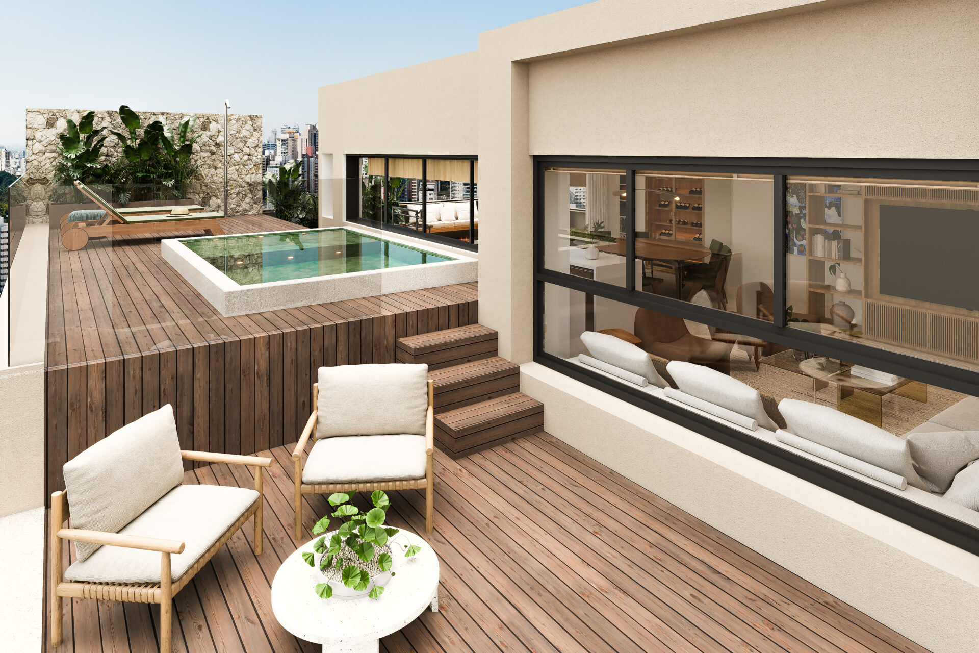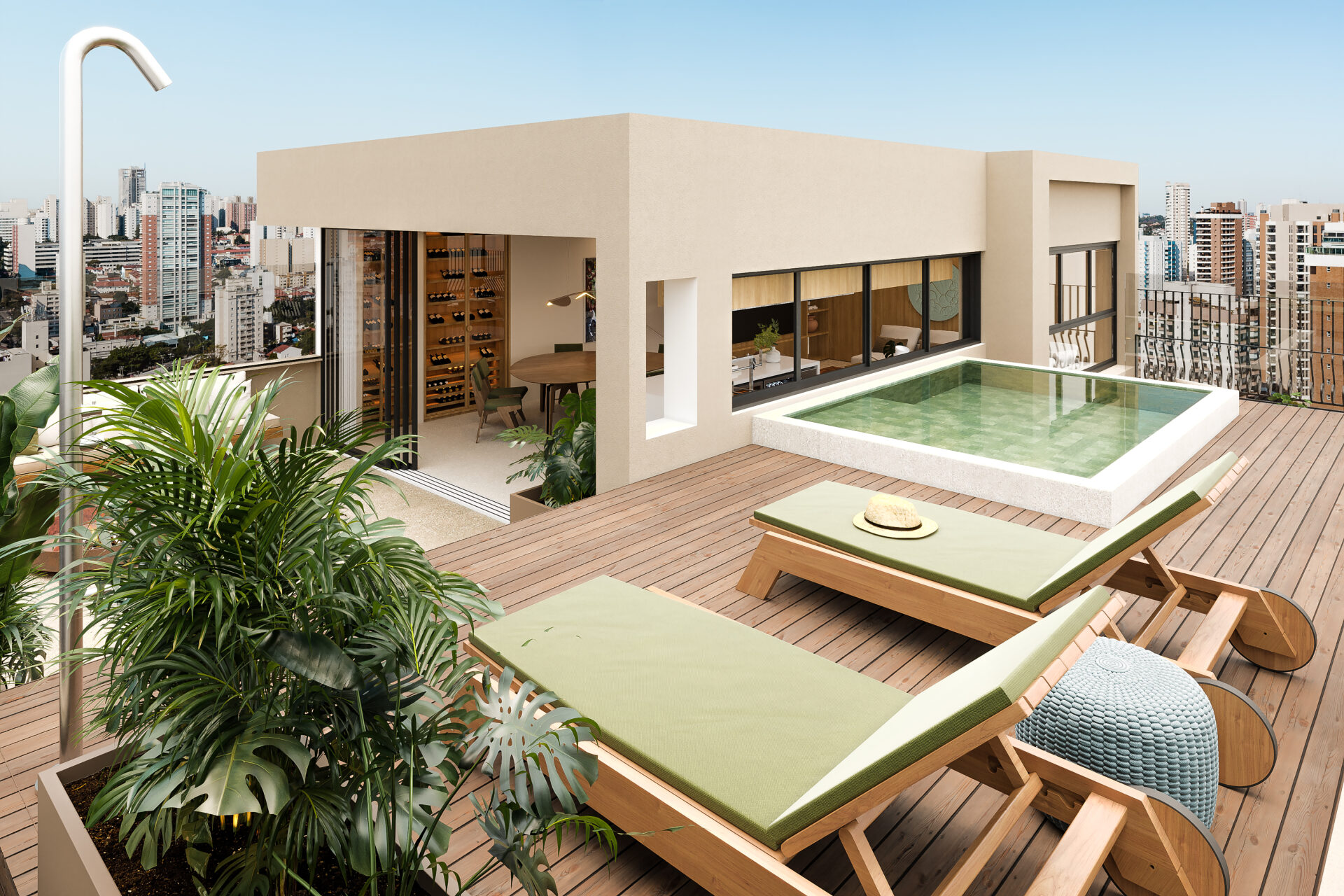 Totalmente transformada, cada detalhe desta cobertura foi pensado para criar um universo particular, onde sofisticação, design e natureza caminham juntos no compasso exato da vida bem vivida.